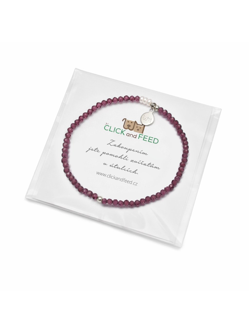 Granátový náramek Click and Feed - stříbro